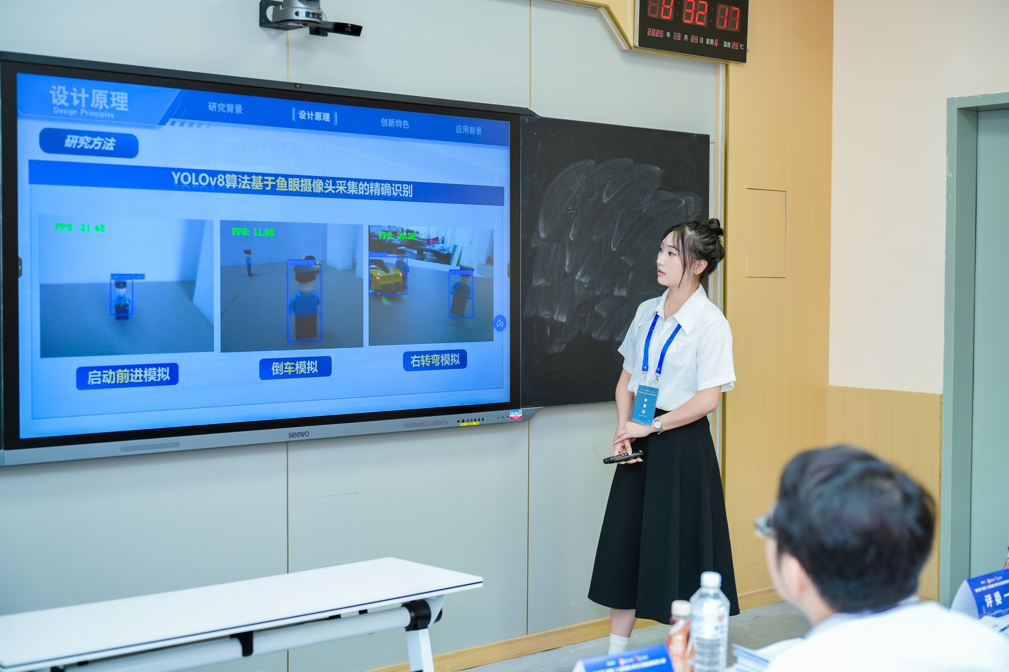 由赵雅旎同学担任负责人、王素锦、万思琪、项学峰和王申奇同学参与的“明界智警—— 一种分级预警的大型车辆盲区检测与预警系统”项目获国赛二等奖。该系统基于多模态感知融合与智能决策算法,通过环形鱼眼摄像头阵列、改进型YOLOv8模型及毫秒级FPGA平台实现盲区目标精准识别,利用DLP等技术实现双向分级预警。为降低大型车辆事故率、保护交通安全、推动交通基础设施智能化提供有效解决方案。