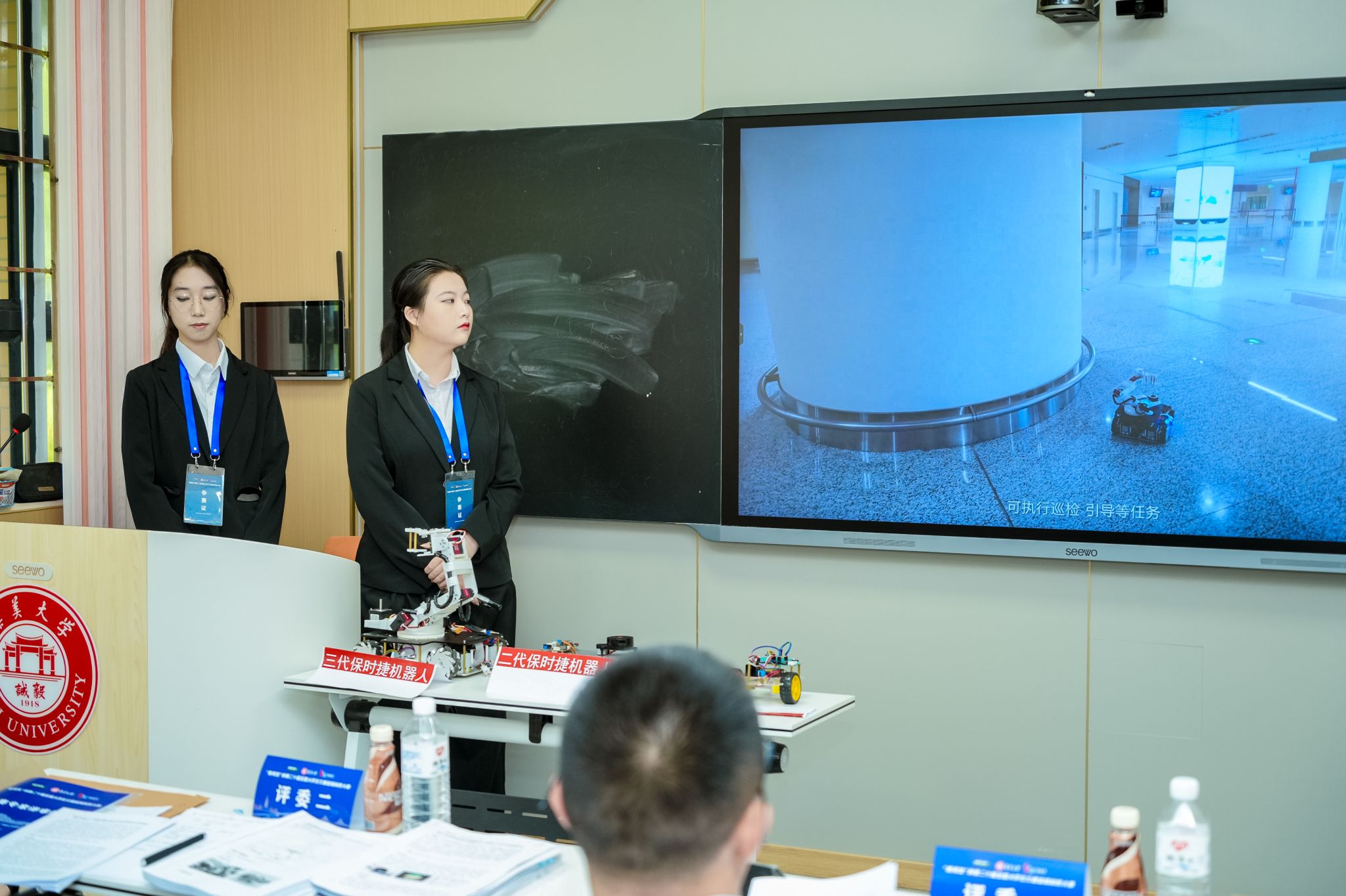 由白小璐同学担任负责人、吴予彤、田佳鑫、刘宇恒和谭楚蕾同学参与的““保时捷”——大型机场航站楼内时空定制路径引导机器人”项目获国赛一等奖。该项目聚焦机场场景中旅客从进入航站楼至登机的全流程路径优化与体验升级,构建“感知 - 规划 - 执行”一体化智能系统,实现视觉感知、机械臂控制与多模态路径规划的深度融合,解决传统流程中人工引导效率低、路径规划静态化的痛点,为智慧民航建设提供了创新解决方案。