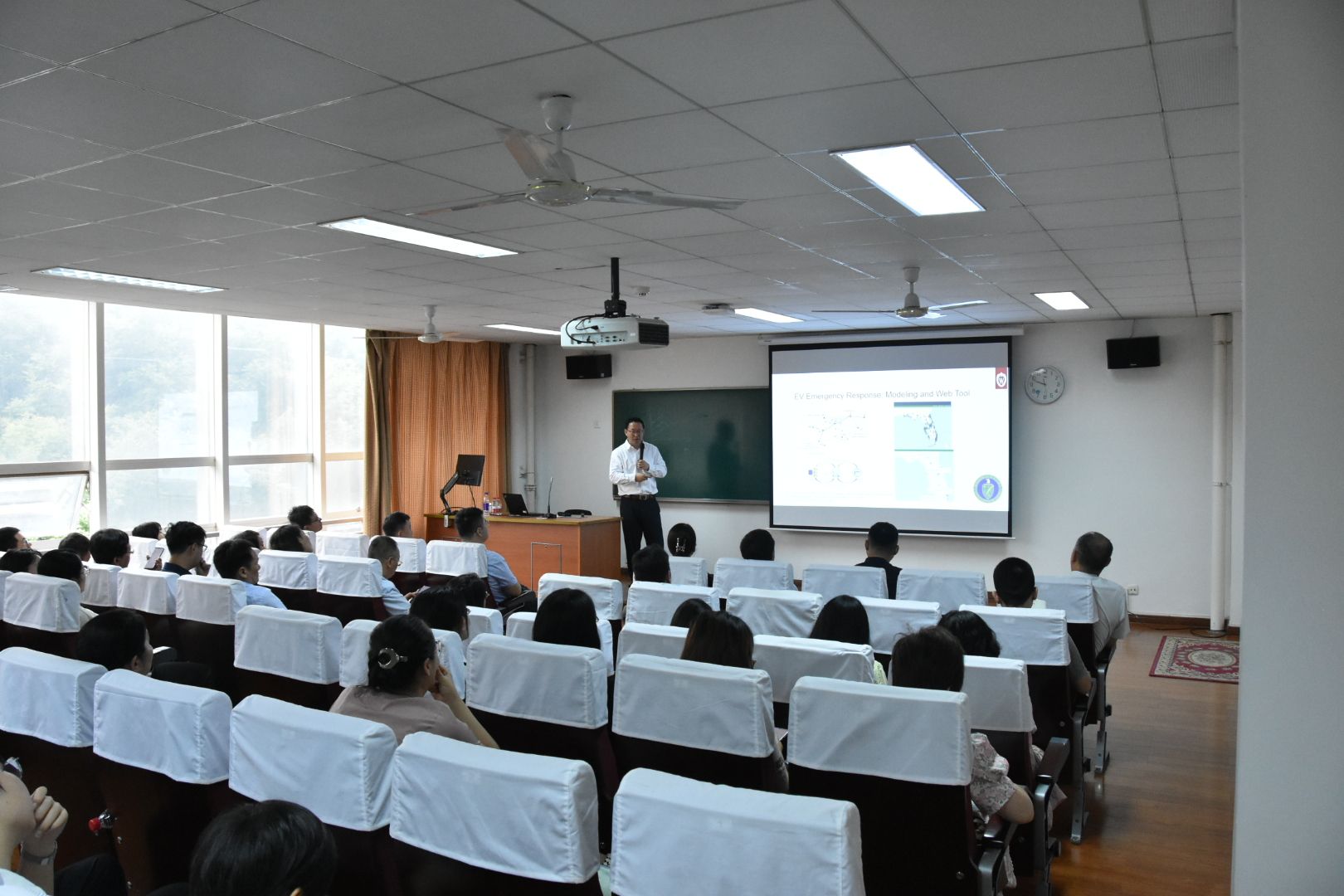 会见后,李小鹏教授在逸夫楼419报告厅以“物理增强残差学习(PERL)框架在车辆轨迹预测中的应用”为题,分享了他在自动驾驶控制与建模、传感器技术以及基础设施设计等领域的研究成果。报告后,李小鹏教授针对参会教师提出的问题进行了解答,拓展了与会师生的国际科研视野与思路。色网 全体教师和在校研究生参加报告会。