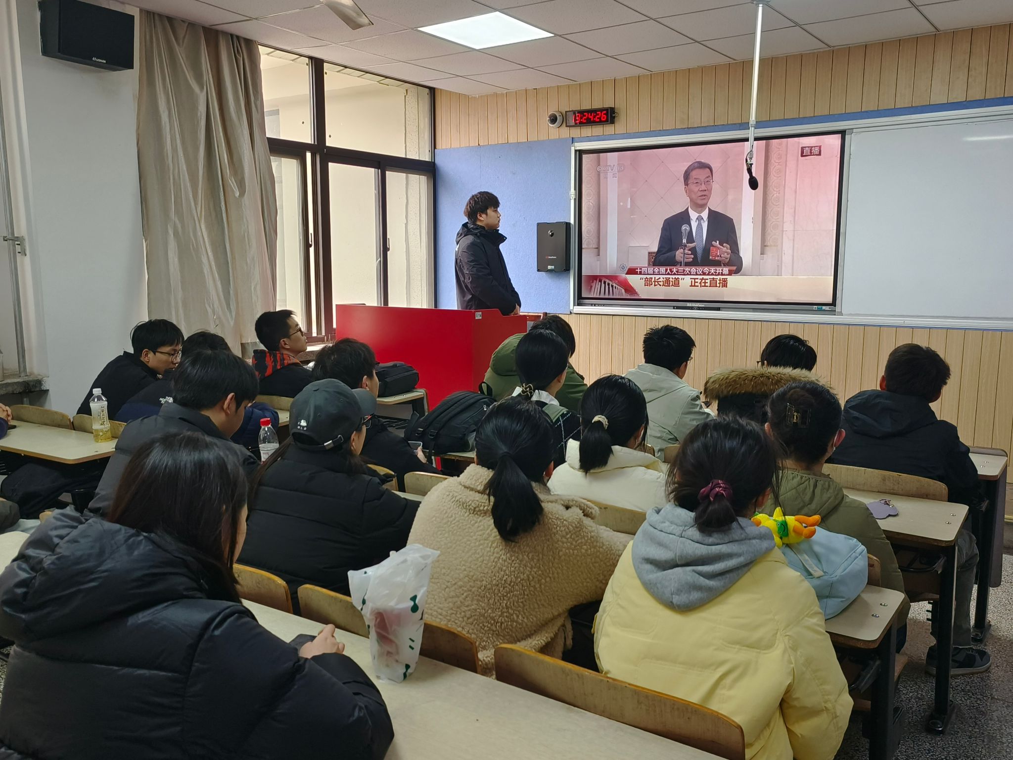 我们结合《政府工作报告》等相关文件,带领同学们系统学习两会精神。重点解读了两会中提到的科技创新、民生保障、绿色发展等前沿领域和民生课题,引导同学们深刻领会国家推进中国式现代化的坚定决心和青年学子在新时代的历史使命。