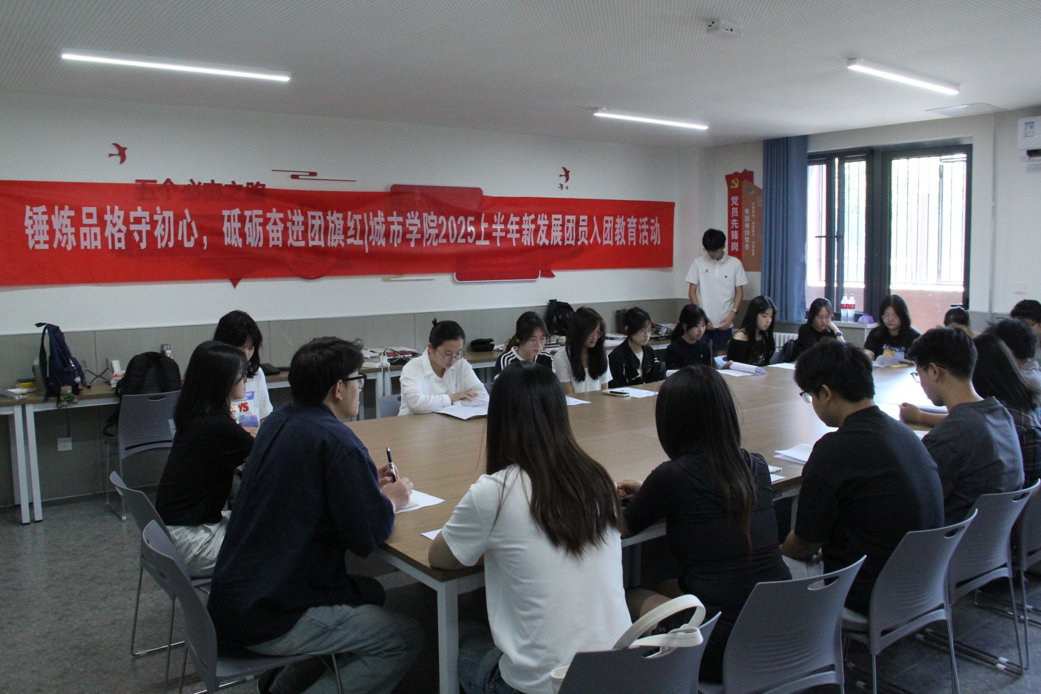 团委开展了“锤炼品格守初心,砥砺奋进团旗红”2025上半年新发展团员入团教育活动。本次活动由辅导员华林炜、团委组织部负责人陈学敏主持,通过理论学习、思想教育与互动交流,为新入团积极分子注入了精神力量。