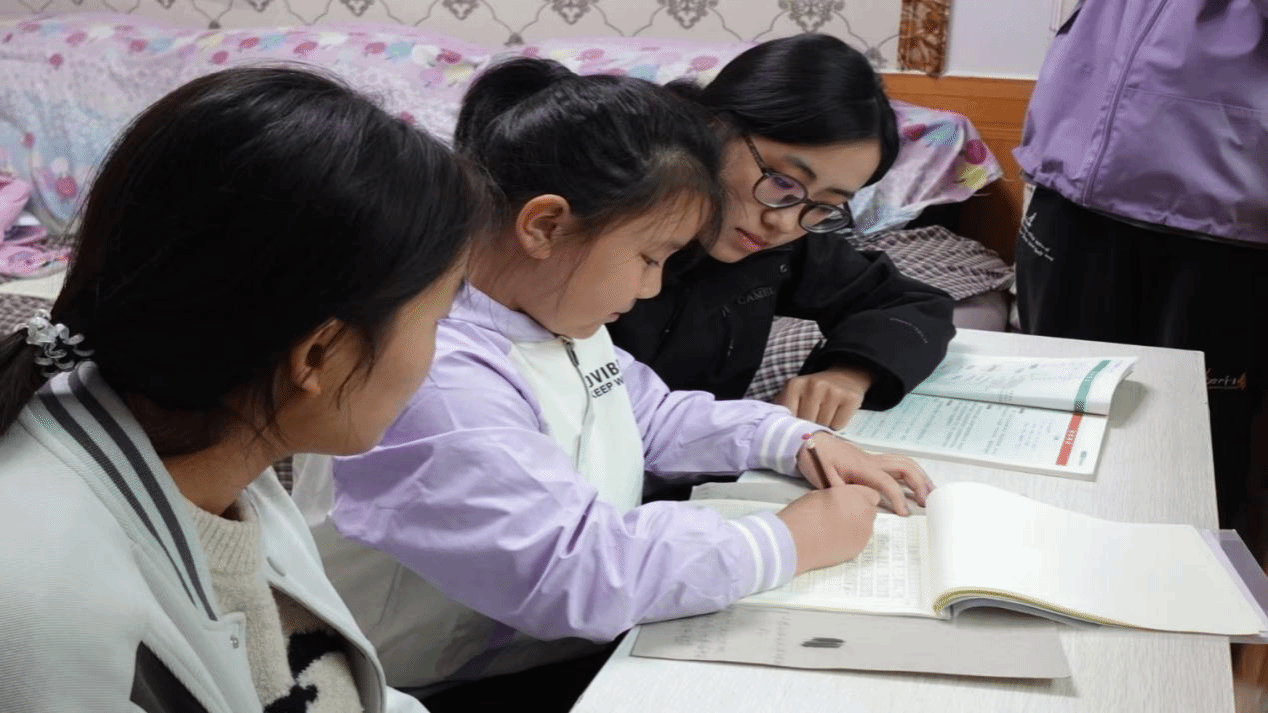 在志愿指教过程中,我院志愿者通过分析不同孩子们的学习情况进行一对一教学,逐题解决他们的疑惑,耐心解答他们在生活与学习中遇到的问题。在学习之余,志愿者还教孩子们做手工,真正做到“以爱为引”,引导他们增强自身的动手能力,呵护他们快乐成长。孩子们获取了知识,明确了前行的方向。